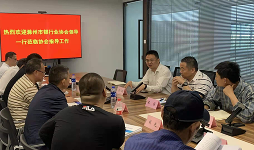 2021年5月13日上午,滁州市银行业协会专职副会长黄连祥协同滁州市地方金融监督管理局、滁州市人民银行、滁州市银保监分局、滁州市保险业协会领导一行9人莅临我协会指导工作,协会秘书长王强、副秘书长马鑫、协会金融科技发展与研究专业委会(以下简称专委会)主任朱斌陪同参观了合肥滨湖金融小镇革命金融与金融科技展并举行交流会谈。